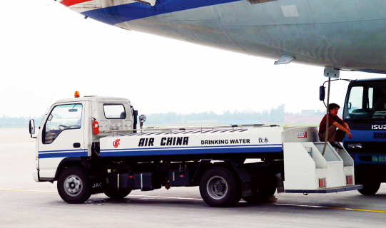 該類設(shè)備是通過車載裝置,為飛機(jī)提供清潔生活用水的自行式機(jī)場(chǎng)地面保障設(shè)備。該設(shè)備由汽車底盤、水箱總成、尾部框架總成、供水系統(tǒng)、液壓系統(tǒng)和電氣控制系統(tǒng)組成。