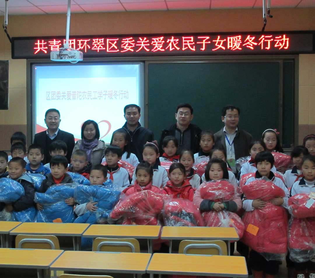 2014年1月9日,公司參加威海環(huán)翠區(qū)關(guān)愛農(nóng)民子女暖冬行動(dòng)