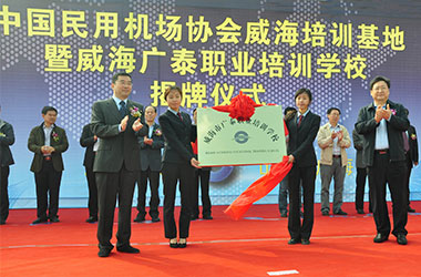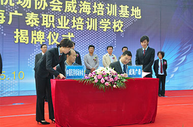 2015年10月,威海廣泰與中國民用機場協會聯合在威海廣泰職業培訓學校成立“中國民用機場協會威海培訓基地”,整合優勢資源,互利共贏,共同打造空港地面設備從業人員職業化培訓平臺,進一步拓寬了師資渠道和培訓力量,提高培訓質量和實效性,對推進我國機場從業人員資質能力培訓的系統化、標準化,具有重要意義。